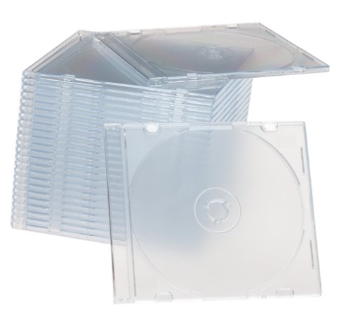 This package of Memorex clear, slim jewel cases contains 25 clear, high-impact plastic cases. Measuring just 5 millimeters in thickness, these slim cases fit any audio or data CD.